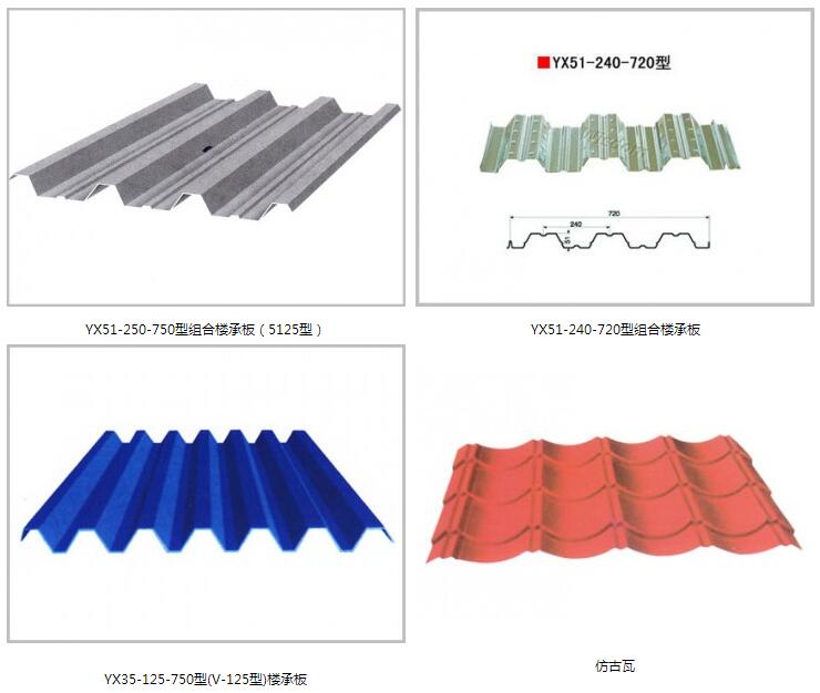 彩鋼壓型板:以0.5-0.8mm厚的優質彩鋼板經精心軋制而成,有波形、仿瓦、拱形等多種載面尺寸形式